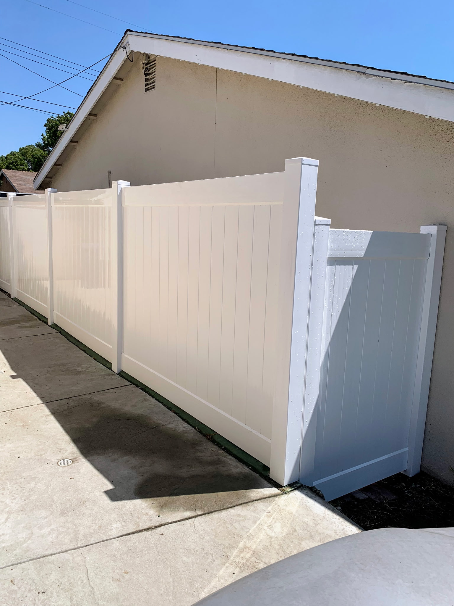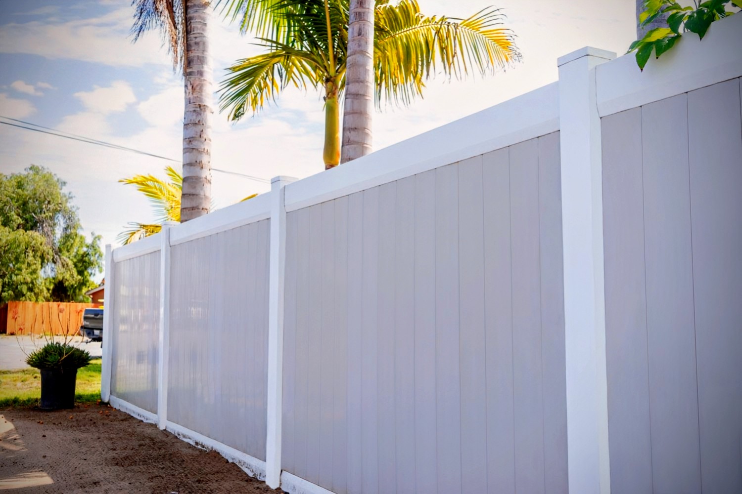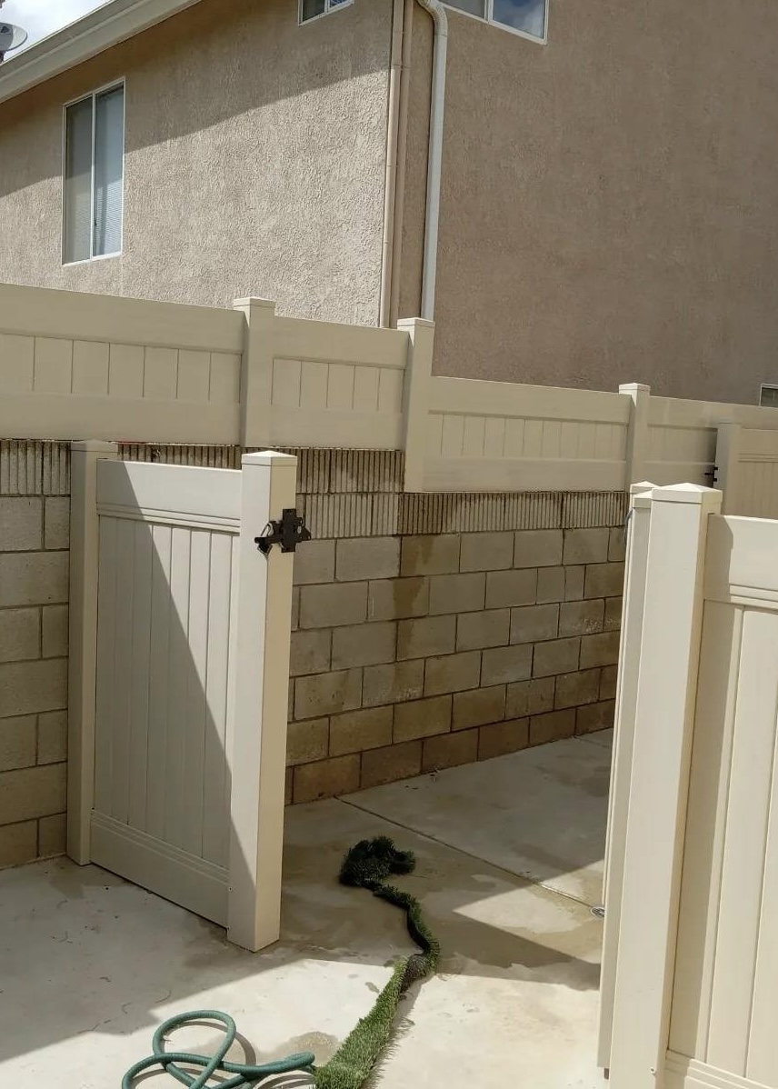 - The vinyl fence is a low maintenance option with great durability and resistant to weather conditions.